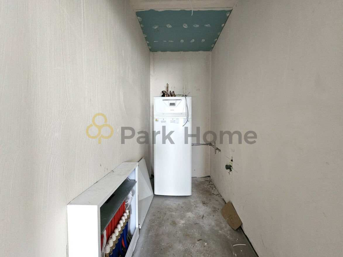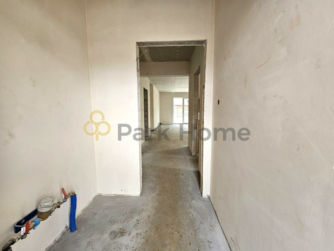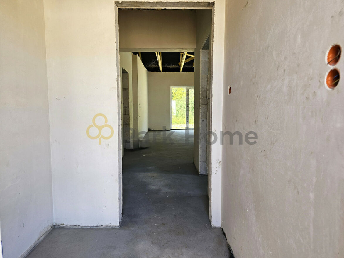 Dom składa się z wiatrołapu z wnęką na szafę, korytarza, z którego przechodzimy do dwóch metrażowo podobnych sypialni, łazienki, kotłowni, w której zainstalowana będzie pompa ciepła, osobnego WC, kolejnego pokoju oraz przestronnego pięknie doświetlonego salonu z aneksem kuchennym.